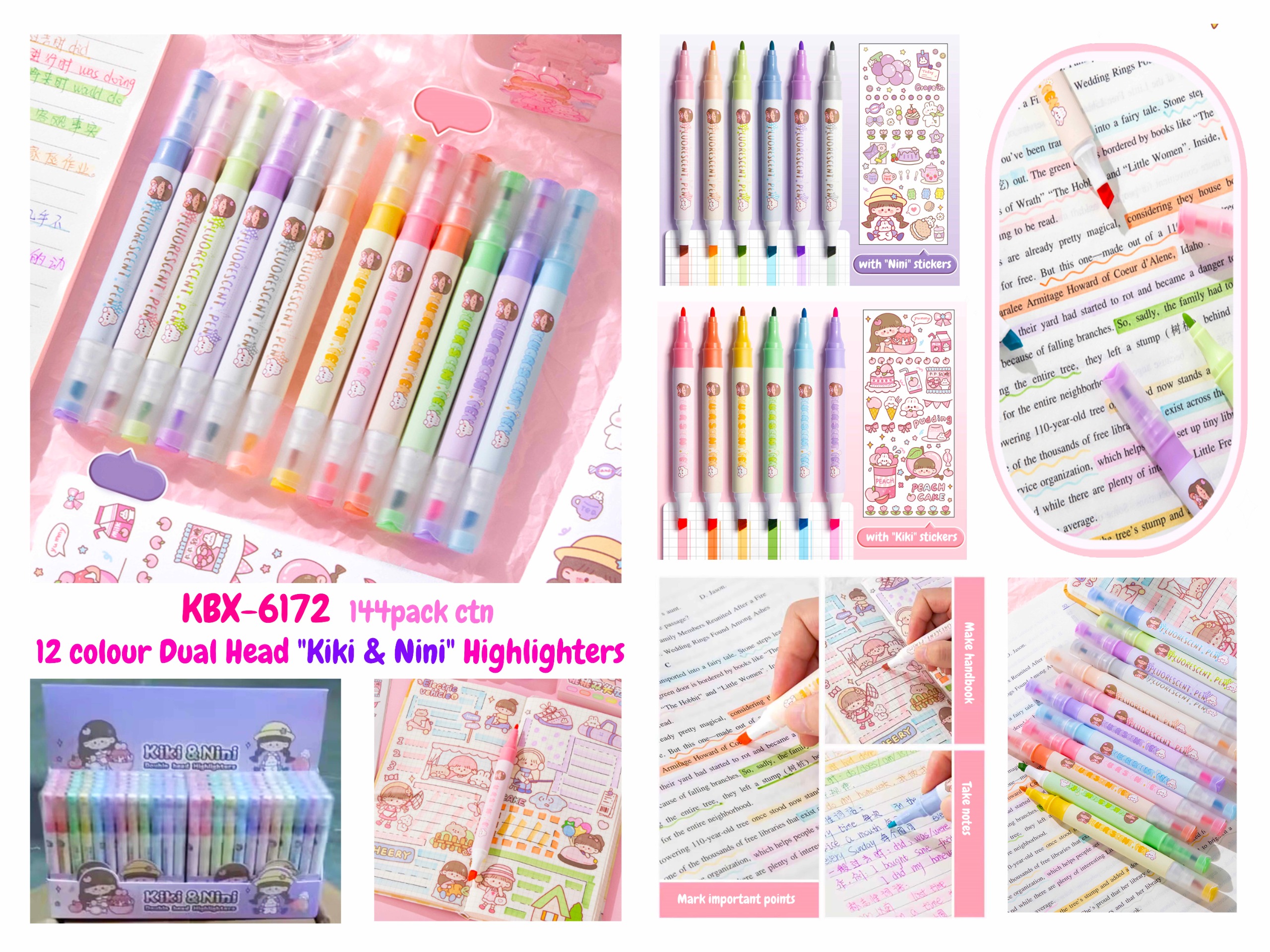 Dual Head "Kiki & Nini" Highlighters (12 Colors)